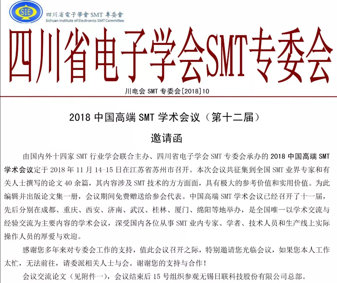2018中國高端SMT學術會議(第十二屆)邀請函